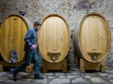 Vinification La vinification a lieu dans des cuves en béton brut remplies par gravité : les raisins sont délicatement placés dans la cuve, sans utiliser de pompes mécaniques qui pourraient endommager l'intégrité du raisin. Cette étape est essentielle pour gérer la vinification du « raisin entier », au point d'affecter toute la conception architecturale du chai et l'achat de machines de tri. Une fois la fermentation commencée, les remontages et délestages sont effectués pendant toute la durée de la cuve, jusqu'à la fin de la fermentation. Un pressoir vertical est utilisé pour le soutirage et le pressurage.